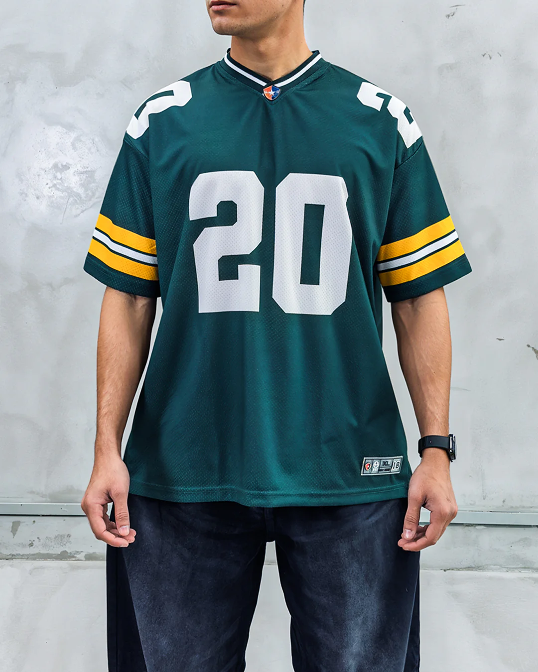 Design Features Bold “20” front print, “2500” shoulder print, striped sleeves